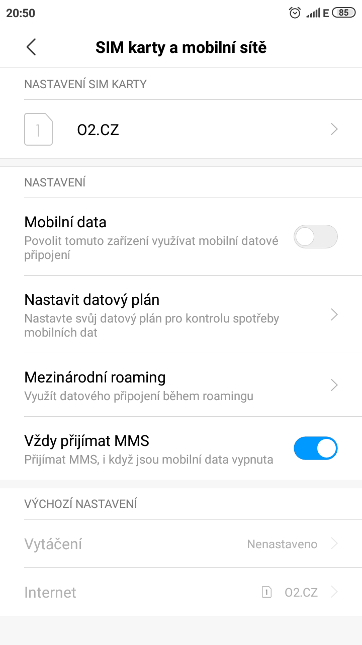 Takze data u operatora mas pro jistotu vypnuta. To chvalim.