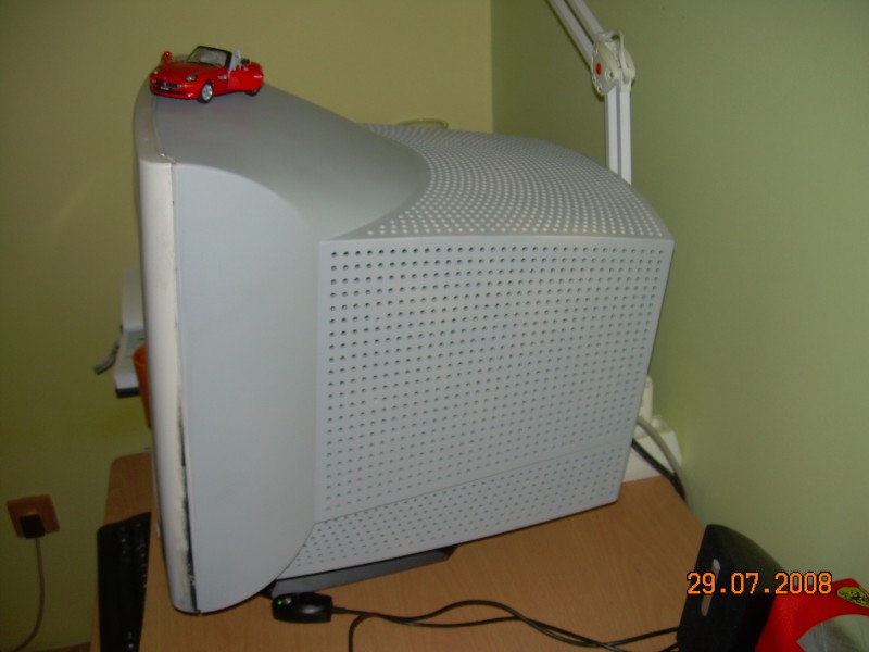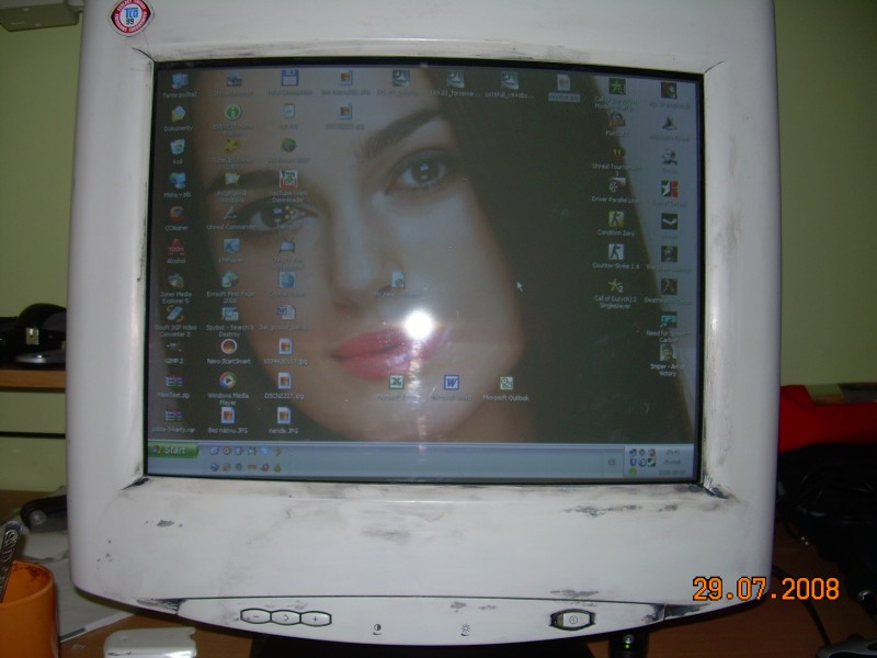 O tento svůj životní krok se musím s vámi podělit. Protoe něco pořád vymýšlím napadlo mě, co si takhle nastříkat svůj bílí monitor CRT na stříbrno černo vše v kliku zadní díl nádhra, ale co ten rám kolem obrazovky?! Pane bože to je hrůza přírody "HUMUS" to je jak špatný vtip pane bože to je pruser, až to zjistí naši