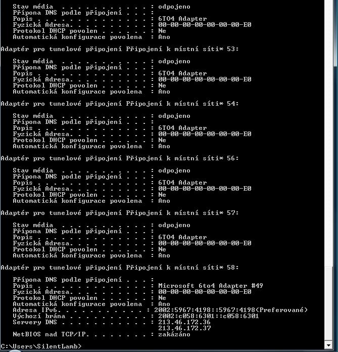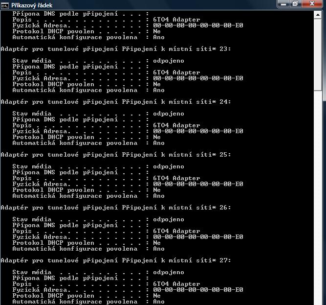 tak hotovo.... ale vyjelo toho tu na mě tolik, že nevím co Ti napsat první... je tu nějaká Adresa IPv6 to je ono? jiné IP tu není, nebo mám to vypsat vše?