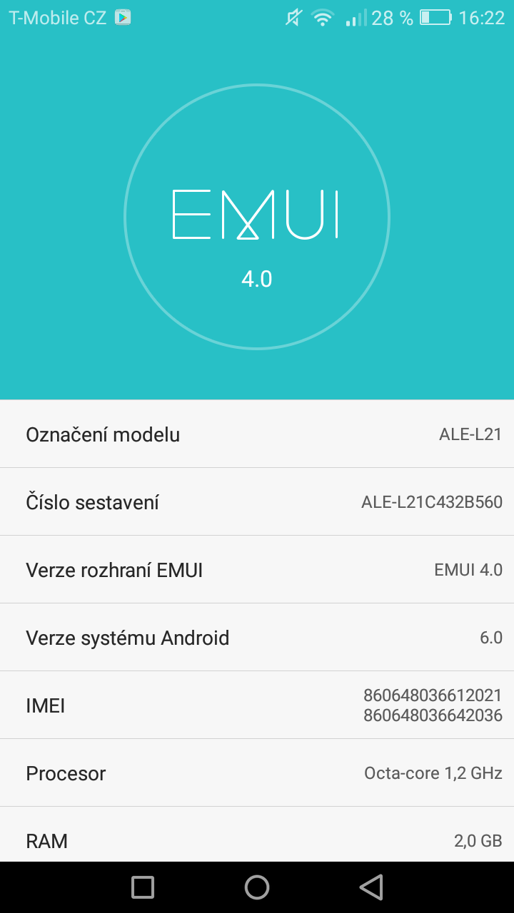 Aktualizoval jsem z oficiálního OTA Huawei P8 Lite Dual SIM ALE L21C432B170 Android 5.0 EMUI 3.1 na ALE L21C432B560 Android 6.0 EMUI 4.0. Kdyby to někoho zajímalo, jak jsem to aktualizoval (jen zdůrazňují, že si tímto obnovíte data do továrního nastavení, takže co je v Místním úložišti bude nemilosrdně smazáno, takže buď to přesunout na SDkartu nebo zálohovat!!!!):