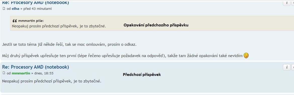 Můj druhý příspěvek upřesňuje ten první (lépe řečeno upřesňuje požadavek na odpověď), takže tam žádné opakování také nevidím