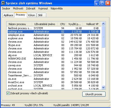 Toto je k ničemu. Který proces to dělá? CTRL+ALT+DELETE = Správce úloh.