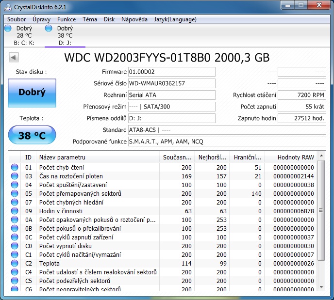 Stáhni si CrystalDiskInfo a dej sem log nebo screen.