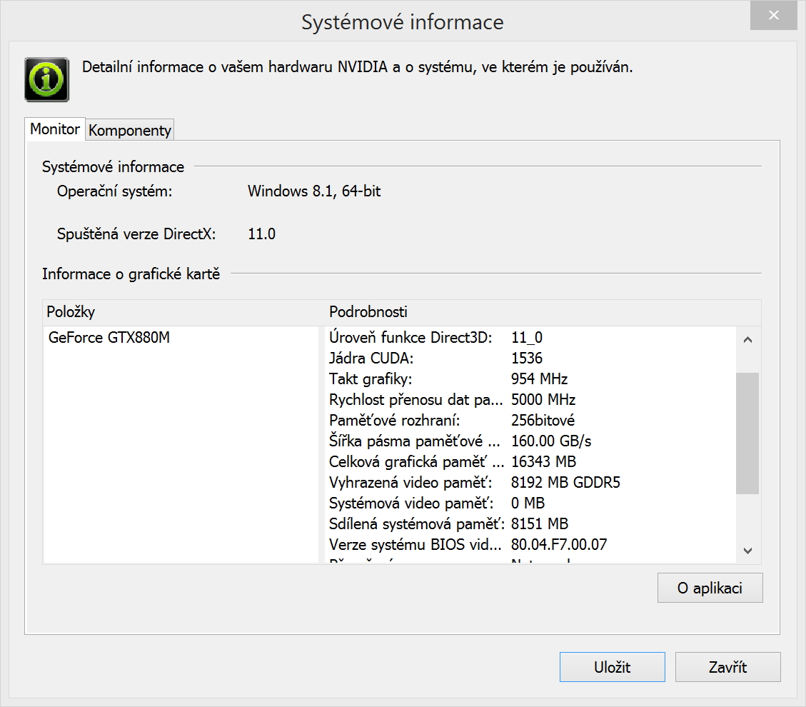 přidávám screenshoot z programu GPU-Z a z ovládacího panelu NVIDIA