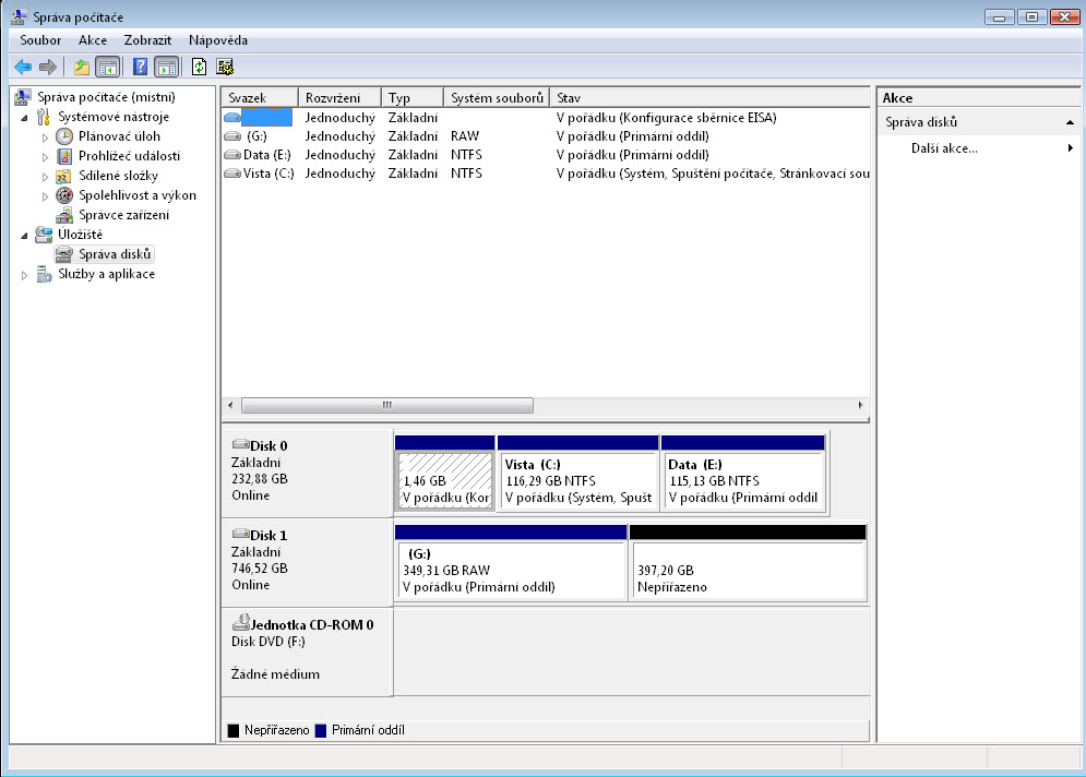 Dobrý den. Používal jsem 3 TB extérní disk Seagate jako záložní. Klasicky ho vždy odepínám funkcí odebrat zařízení. Jednou po připnutí jsem se do něj nemohl dostat a chtělo to po mě naformátování. Ve správě disků ho vidí jako systém souborů RAW. Žádný program na obnovu dat u něj nefunguje.Nevidí ho. S daty jsem se už rozloučil. Nevíte prosím jak postupovat dál? Je možná oprava nebo vyhazov? Občas se mě stalo když jsem ho připnul na jiný comp že ho na chvíli viděl. Ale teď už nic. Disk má své napájení. Připínám ho na notebook s Vista 32 bit. V příloze je screen ze správce souborů.