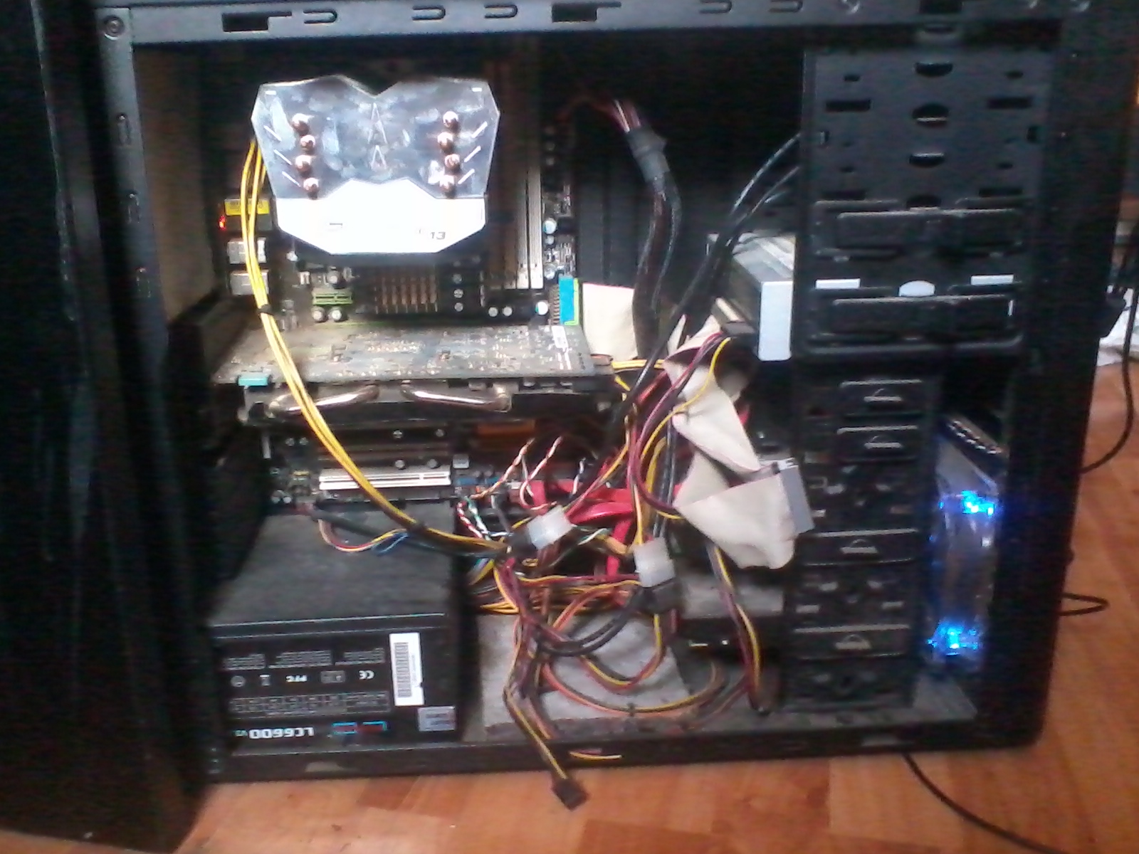 Sice Ti psal, aby si PC v biose nechal 10 minut, ale když máš čas a chceš tomu věnovat 30-40, co kdyby si rovnou otočil ten chladič jak Ti psal petr22, zpřístupnil odvod teplého vzduchu pryč ze skříně s využitím bočního ventilátoru a přemontováním dozadu a zkusil to rovnou ve hře s teplotama ? Budeš o krok vepředu, časově stejně, PC to jen prospěje od prvního zapnutí a když už v tom budeš, vyluxuj a vyfoukej prach tolik, co to pujde a budou vidět i tištěné spoje. Časově super si myslim na tom budeš :) na cable management to nebude, ale i tak pokrok.