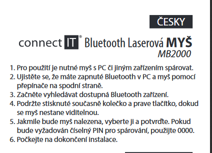 Dobrý den, koupil jsem si myš Connect it 201 je na bluethoth 3.0. Ta stará myš (misrosoft mouse 5000) už byla dost opoužíváná. Zkoušel jsem ji připojit přes bluethoth přidat zařízení bluethoth, ale tam se nic neukáže. Hledá a hledá a nic. Telefon a druhý počítač tam jsou normálně a s jejich připojením nebyl žádný problém. Zkoušel jsem vše možné ale bez ůspěchu. Myš jsem vrátil a vzal druhou ale bohužel stejný problém nic se neukazuje a nejde připojit. Podle mého dělám já někde chybu nebo je chyba v pc. v nějakém nastavení.Verze a typ programu je v obrázku, stará myš s ním neměla problém.