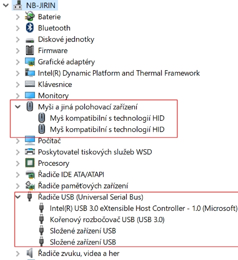 Když se sekne, je ve správci zařízení toto: