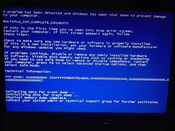 Pro jistotu ještě obrázek modré obrazovky, za kvalitu se omlouvám ale snad to pujde přečíst.