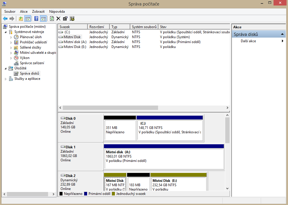 Klikni na klávesu win a vlož tam : diskmgmt.msc
