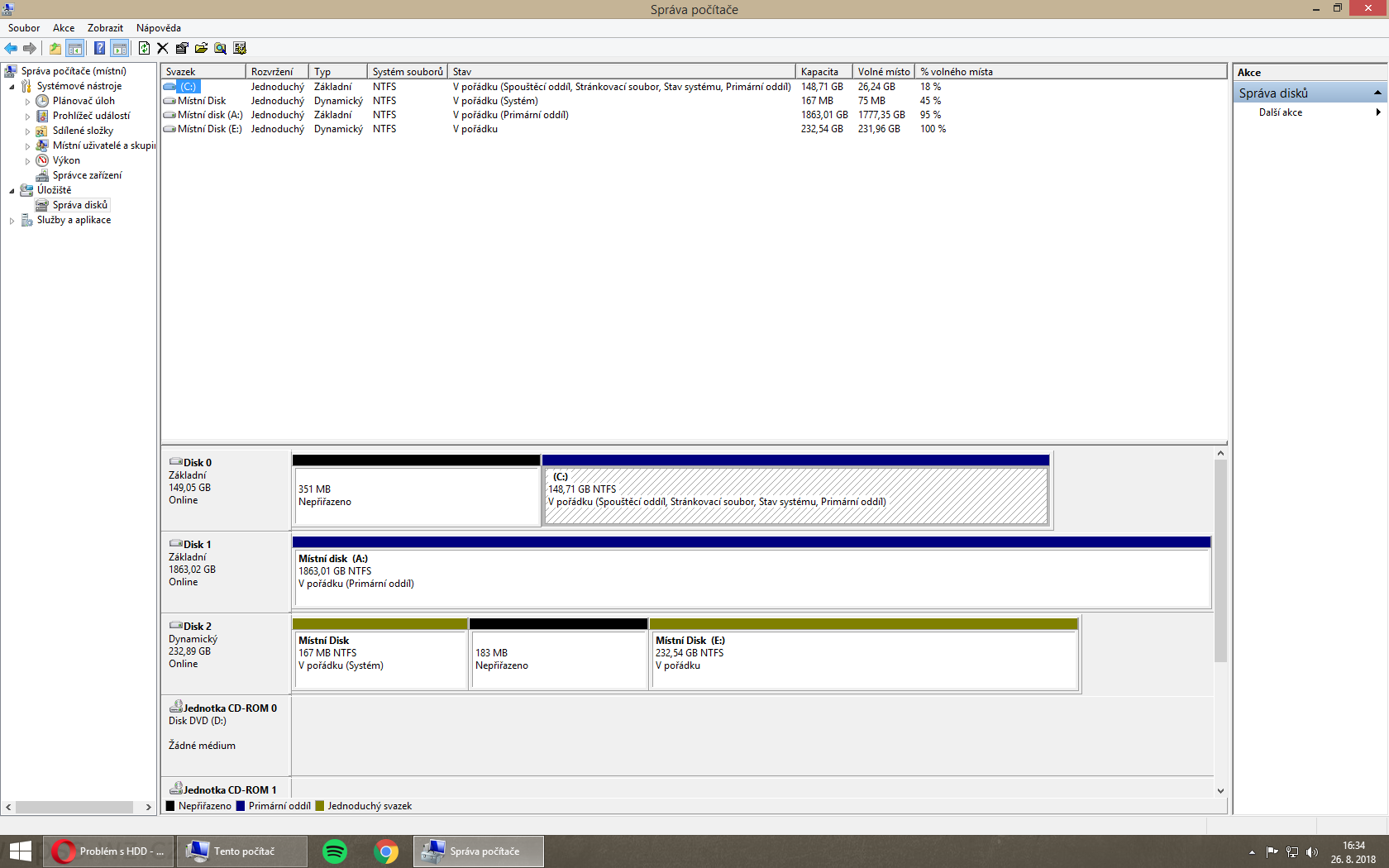 Zdravím, koupil jsem si dneska nový HDD a chtěl jsem si v pc nechát jen ten nový a druhý, na kterém je windows. Problém je v tom, že když ten druhý, na kterém windows není dám pryč tak mi nejde spustit windows a ukazuje mi to nějakou chybu. Trošku jsem pátral co je za problém a na druhém disku je systemový svazek. Nejde nějak přesunout nebo neví někdo prosím co s tím? Budu rád za každou radu. Předem děkuji za odpovědi. Hodím sem screeny.