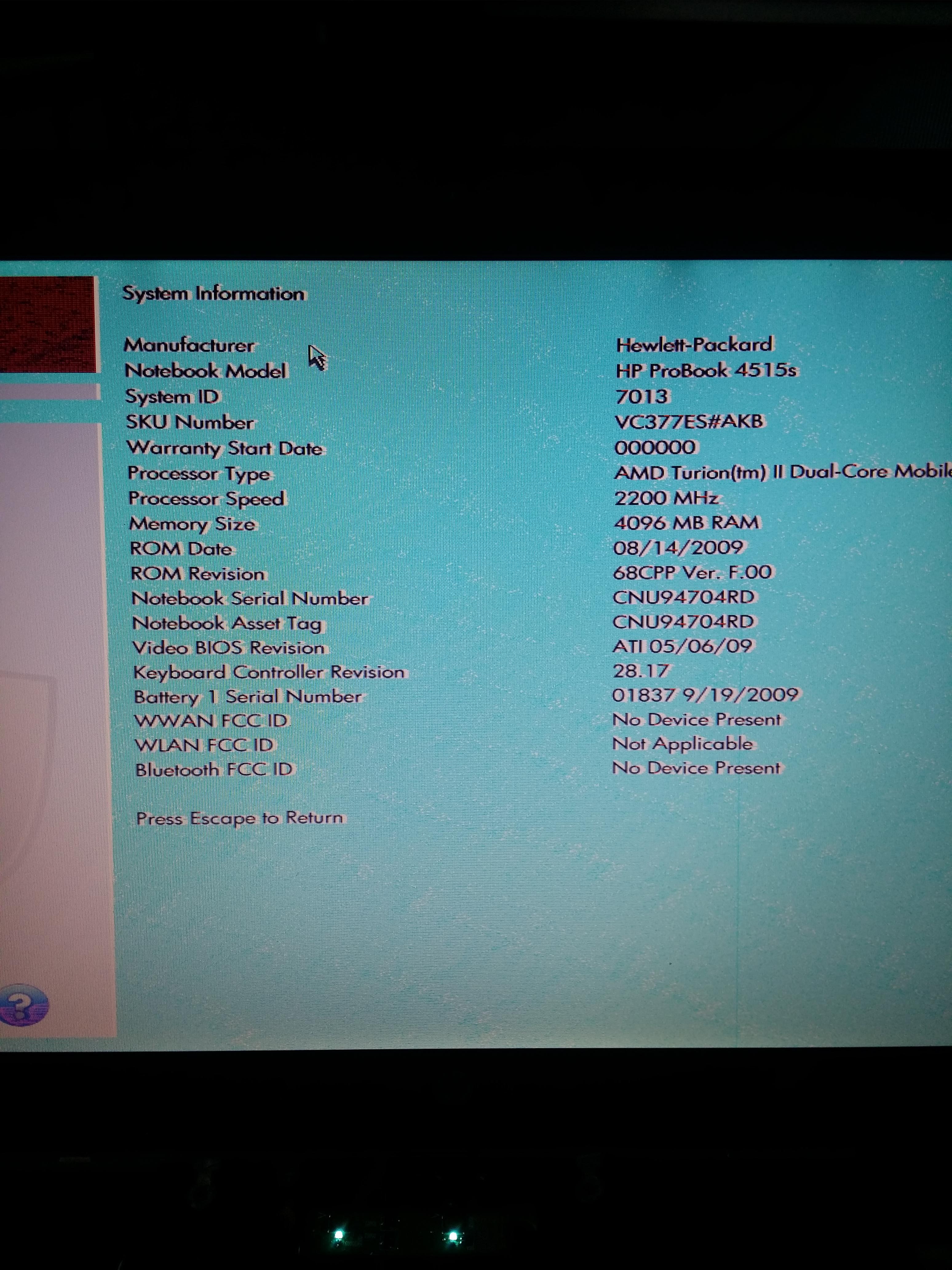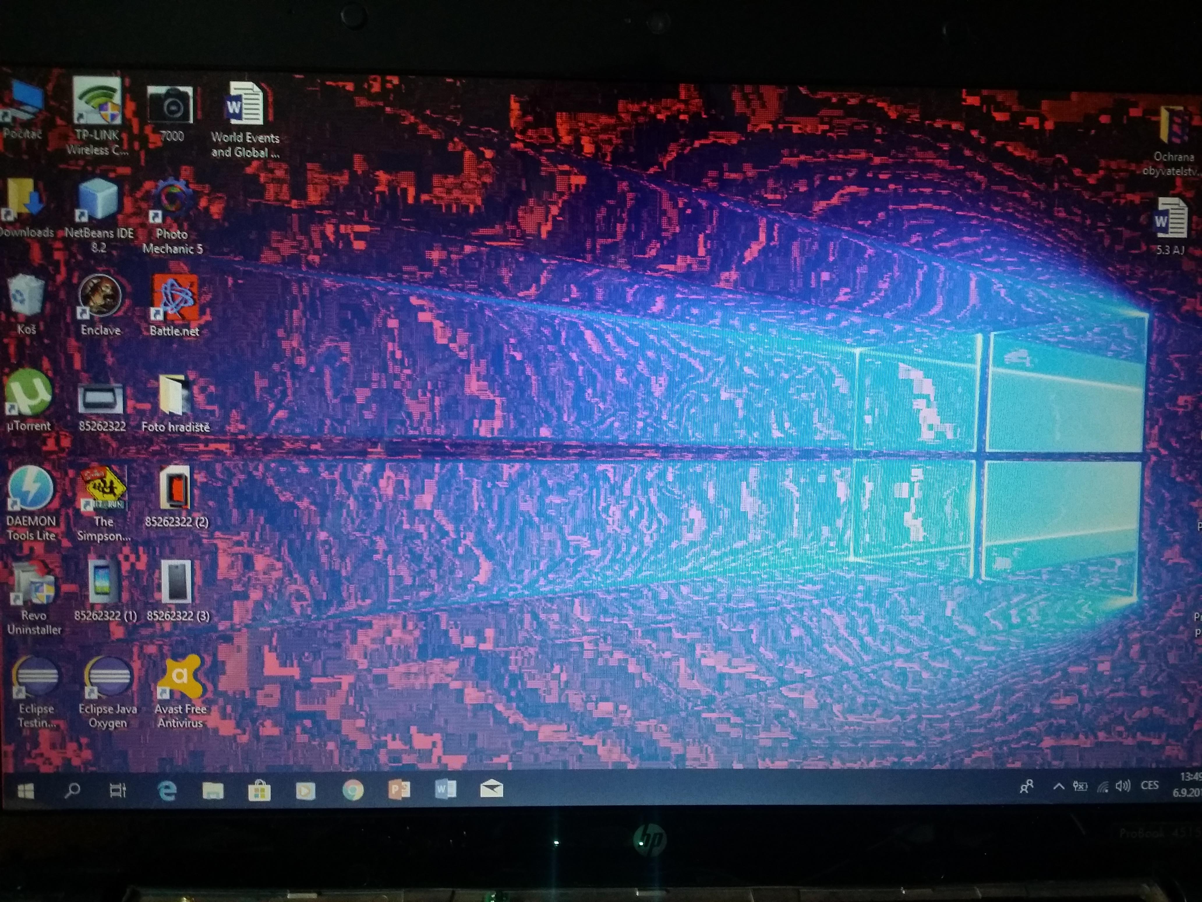 mám problém s notebookem HP Probook 4515s, prod. číslo: VC377ES#AKB. Notebook běží naprosto v pořádku jen má problém s barvami. Místo černé ukazuje červenou a místo bílé světle modrou (viz. obrázek). Jelikož je červený i BIOS, tak problém asi nebude na straně softwaru.
