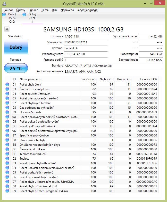 Prosím, můžete mi někdo říct, co je špatně s mým jedním diskem? (SAMSUNG HD103SI 1000,2 GB)