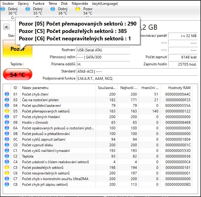 hod sem SMART hodnoty. naformatovany na NTFS ho mas?