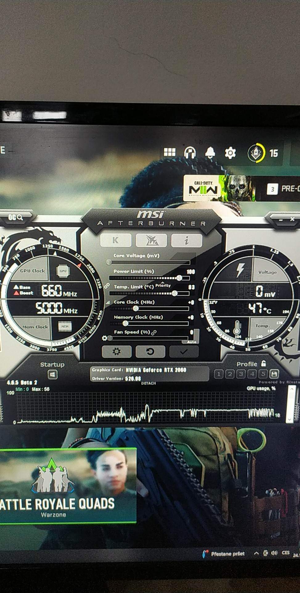 Ve warzone nejede dobře ani má 3080.. to není rozhodně hra na testování, jedna z nejrozbitejsich her poslední doby. Další otázka, nemáš nastaveny limit fps v afterburnu?