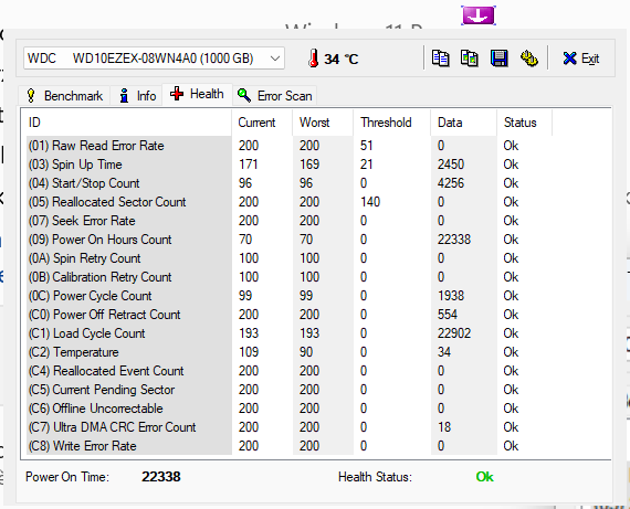 Windows 11 je nainstalovaný , dělala to sítová karta. Nakonec při dokončování, jsem musel vyměnit i sítový kabel, WIN 11 mi ho prostě nechtěl vzít. Nejde mi vidět, jeden disk. Udělalo mi to i ve WIN 10 , jeden disk hlásil, že má problém s kabelem, tak jsem ho vyměnil a bylo to v pořádku. Prosím o kontrolu stavu disků. u všech Error scan v pořádku
