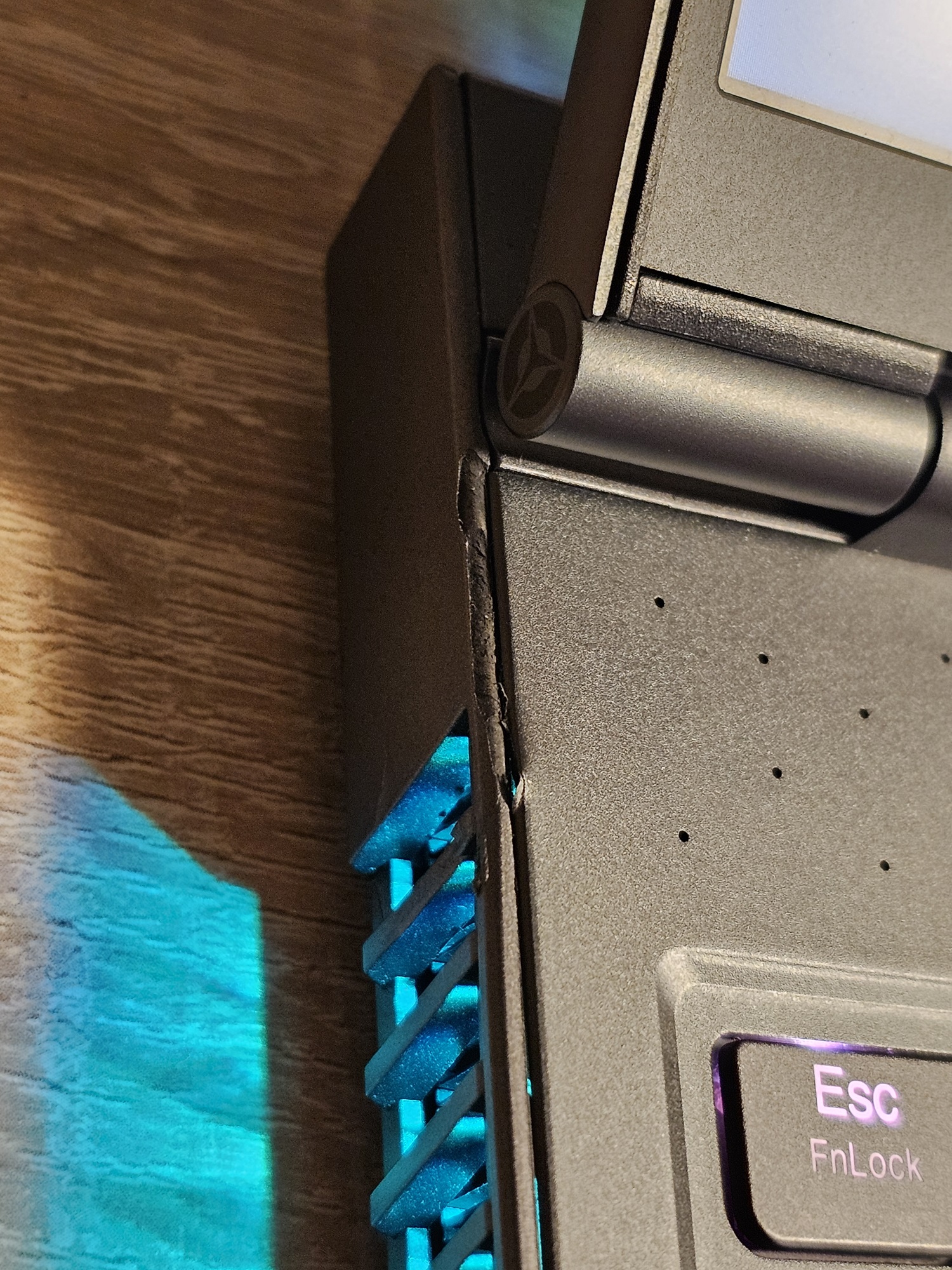 stal se mi problém s mým notebookem Lenovo Legion 7 16ACHg6, který jsem měl uložený v pouzdře. S čím jsem nikdy nepočítal, že se jednou stane, ale stalo se, syn mi ho shodil ze stolu na plovoucí podlahu. Po vyjmutí notebooku z obalu jsem zjistil že, zip lze těžce rozepnout. Pád jsem samotný neviděl, ale notebook spadnul přímo na ten zip, který byl zapnutý na levém boku. Zip jde otevírat ztuha, takže poškození šlo skrze něj. Na stejném místě (kde byl zip) na šasi notebooku mám poškozený rámeček větrání a trochu zdeformované šasi v této části. Z rámečku mám odštípnutý kus plastu. Pro lepší orientaci přidávám foto. Přemýšlím co s tím. Notebook po všech stránkách funguje normálně, ale toto mě velice mrzí. Je servis toto schopný opravit? Zjistil jsem, že by minimálně musel vyměnit spodní a horní kryt, kterého se poškození týká. Máte někdo s tímto zkušenosti? Řešili jste něco obdobného? Jak realizace opravy probíhala a na kolik finančně vyšla? Případně můžete doporučit nějaký pozáruční servis Lenovo?
