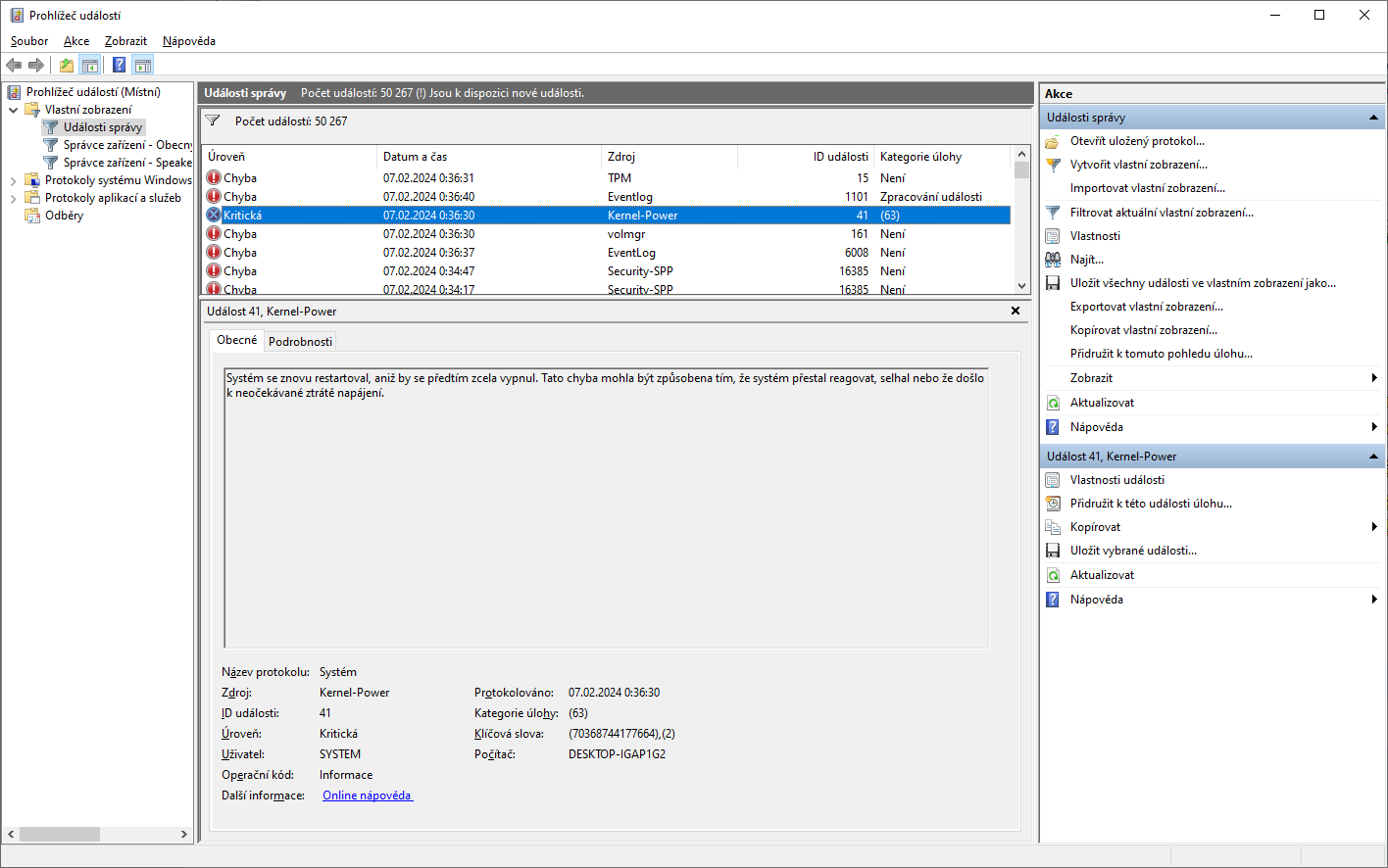 Tahle chyba signalizuje až ztrátu napájení, důvod bude v některém předešlém záznamu toho protokolu. Zmíněné rozšíření na 32GB, teď je tam osazeno 4x8GB? To by mohl být důvod nestability. Jaká je celá sestava?