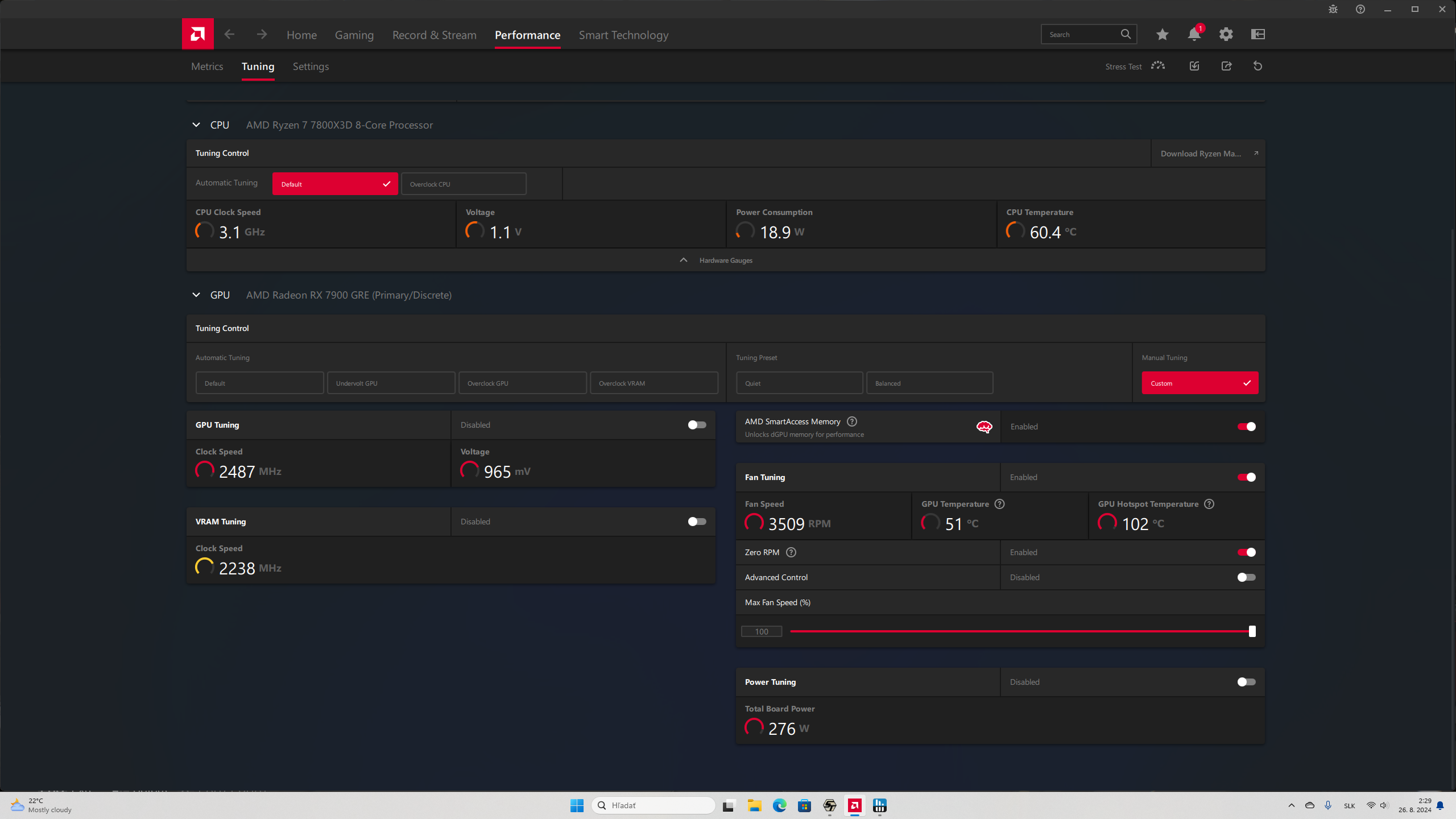 Tak malá aktualizace pro všechny. Objednal jsem si vonné tyčinky, bohužel mi dorazí až koncem tohoto měsíce (srpen), pak budu konečně schopnej otestovat ten airflow. Takže prozatím jsem se úplně vysral, s prominutím, na jakýkoliv overclock. Nechal jsem to na základní limit, tuším 273 wattů, a zatím se teploty drží těsně pod 110 °C (vím, to není normální, hlavně s obřím 3 slotovým chladičem). Nejvíc šílená je delta na tom čipu, průměr na grafice okolo 60, někdy 65 stupňů, hotspot 108 (momentálně po zhruba půl hodině hraní). Takže celková delta mezi hotspotem a průměrem je téměř 50 stupňů, což je asi nejvíc, co jsem našel na celém internetu. Už jen proto vím, že mi reklamaci schválí, protože se z tohoto jednoho čísla dá celkem jednoduše vyvodit, že je grafika skutečně vadná, poškozená, nebo to jen někdo zmrvil při montáži. Kdo ví, fakt je ale, že delta téměř 50 stupňů je šílenost.