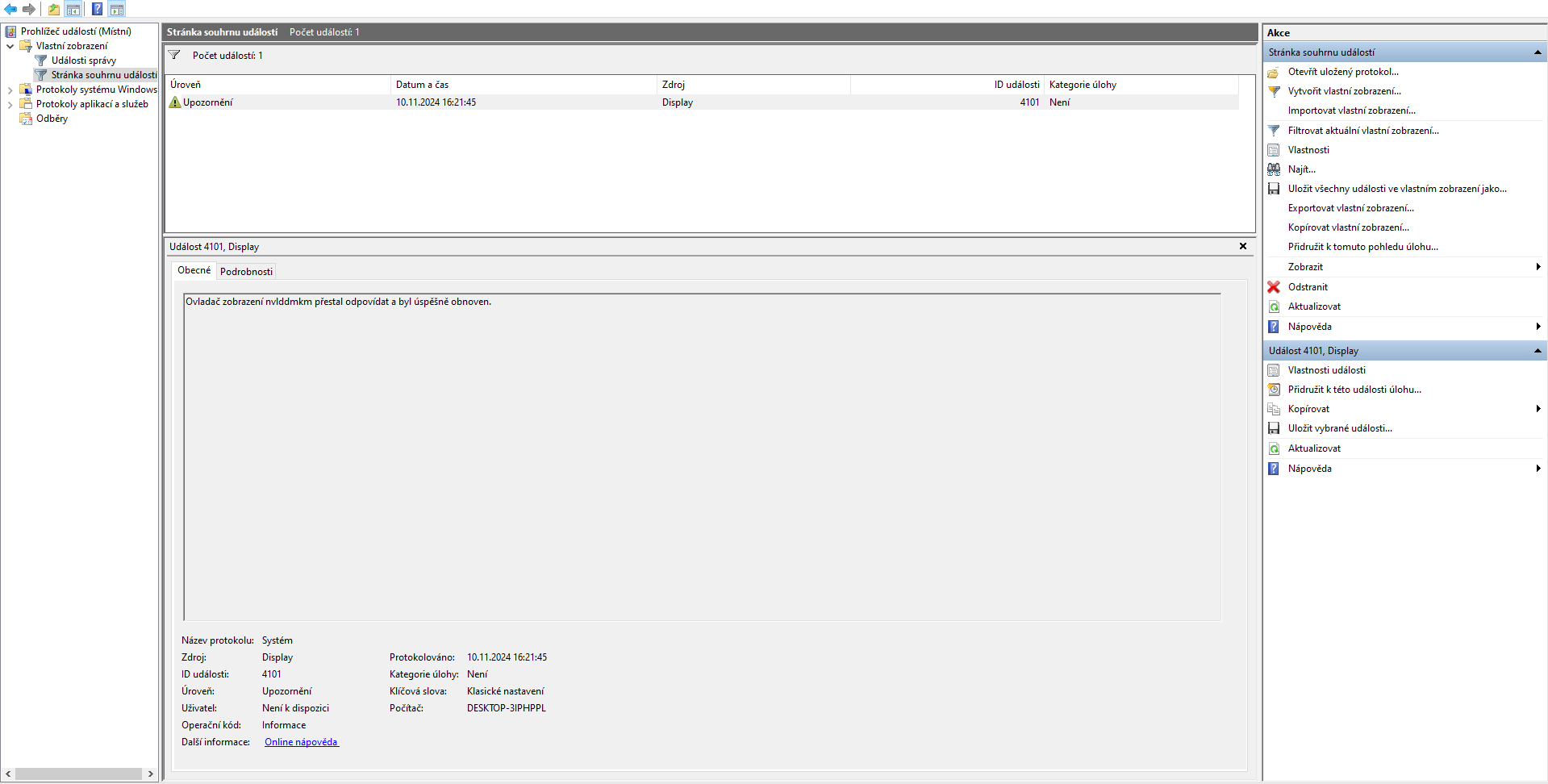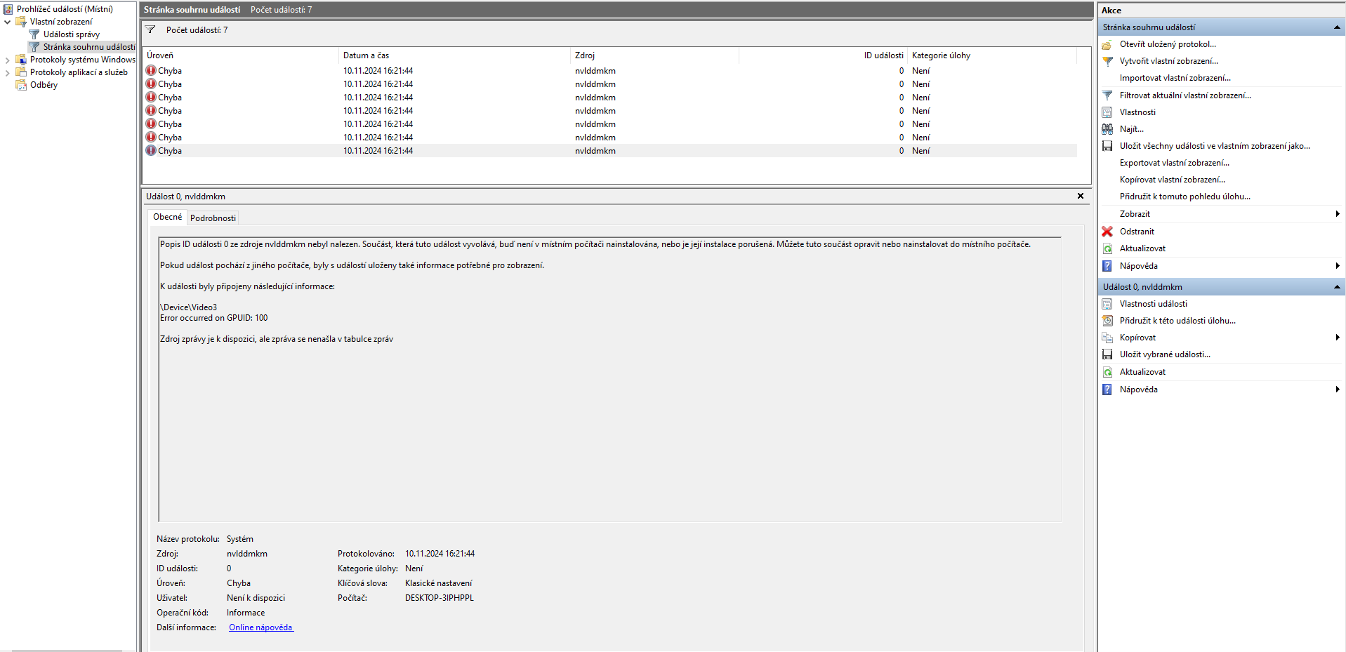 Prohlédl jsem Prohlížeč událostí. V daném času a datu jsem našel pouze toto v screenshot č.1 je těch chyb více stejných pod sebou v screenshot č.2 je jen jedenpetr22 píše:Jak moc kriticke to je uvidis sam casem a o co se jedna take musis zjistit sam, pouze z tehle chyby se to zjistit neda.