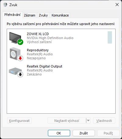 - Odinstalován a nainstalován driver zvukové karty (Jak NVIDIA tak Realtek), nic nepomohlo.