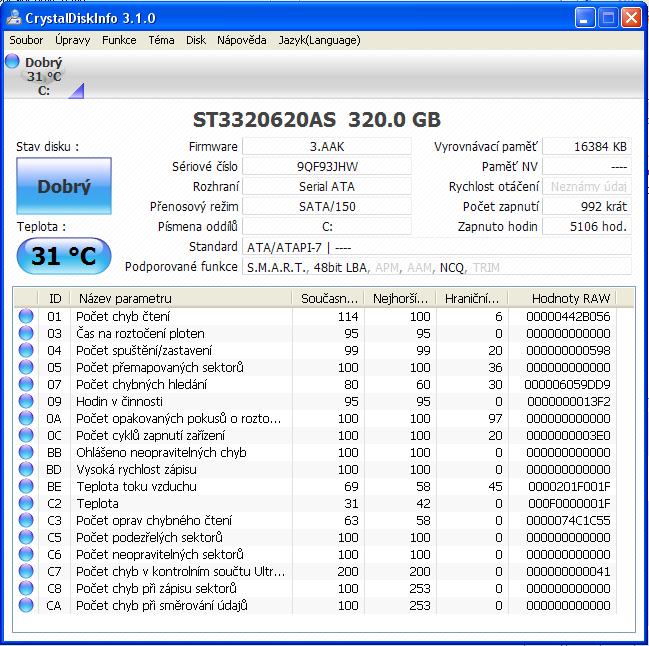 "chyba čtení disku" zkoušel jsem několik restartů, ale nepomohlo to, potom jsem pohýbal z datovým káblem připojený k disku a pomohlo to,pc se rozběhlo ale je strašně zpomalené,pokaždé když jsem pohýbal s tím datovým káblem tak PC nejelo vůbec nebo se rozjelo ale opravdu zpomalené,to trvá i nadále, zkusil jsem zjistit nejaké info o disku programem Crystaldiskinfo a z něho vyjelo: viz.příloha1