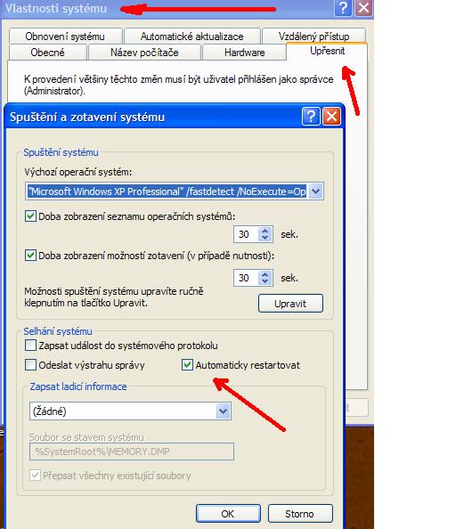 Nepíšeš jaký máš systém - vypnutí restartu a zobrazení chyby na blue screenu u XP je zde: