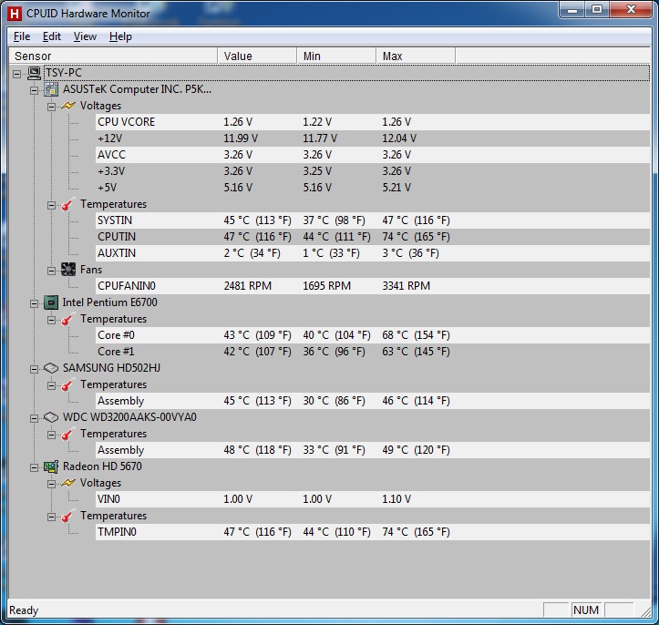 Teplota CPU taký nevím jestli je úpně ideální no poďte sami má skoro 70C (v Biosu, SpeedFanu, HW monitoru PC speaker ukazuje méně) což si myslim že je už taková hranice..