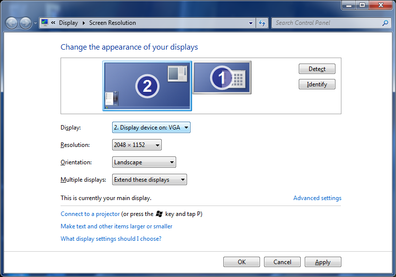 a takhle to vypada v nastaveni zobrazeni (to mi prijde divne, misto Display device on: VGA by tam melo byt Samsung...)