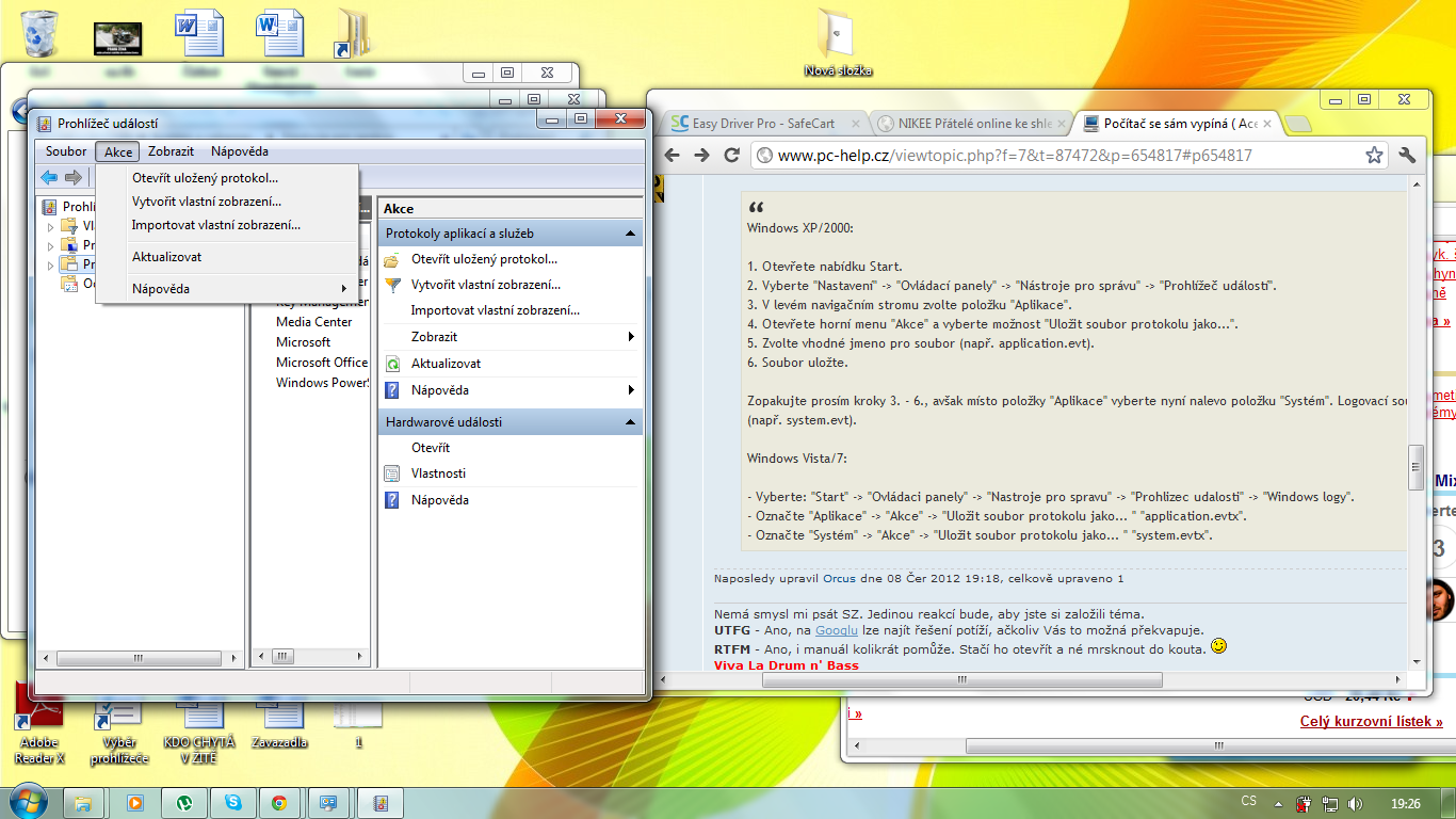 Nic takového jako Uložit soubor protokolu jako.. tady nemám..posílala jsem scree složky Windows a tam taky můžete vidět, že ani žádný memory, tam není