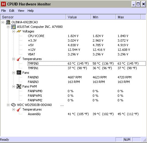 -spusť HeavyLoad a Hardware Monitor. V HeavyLoad spusť zátěžový test, po 10 min udělej screen Hardware Monitoru a hoď ho sem.