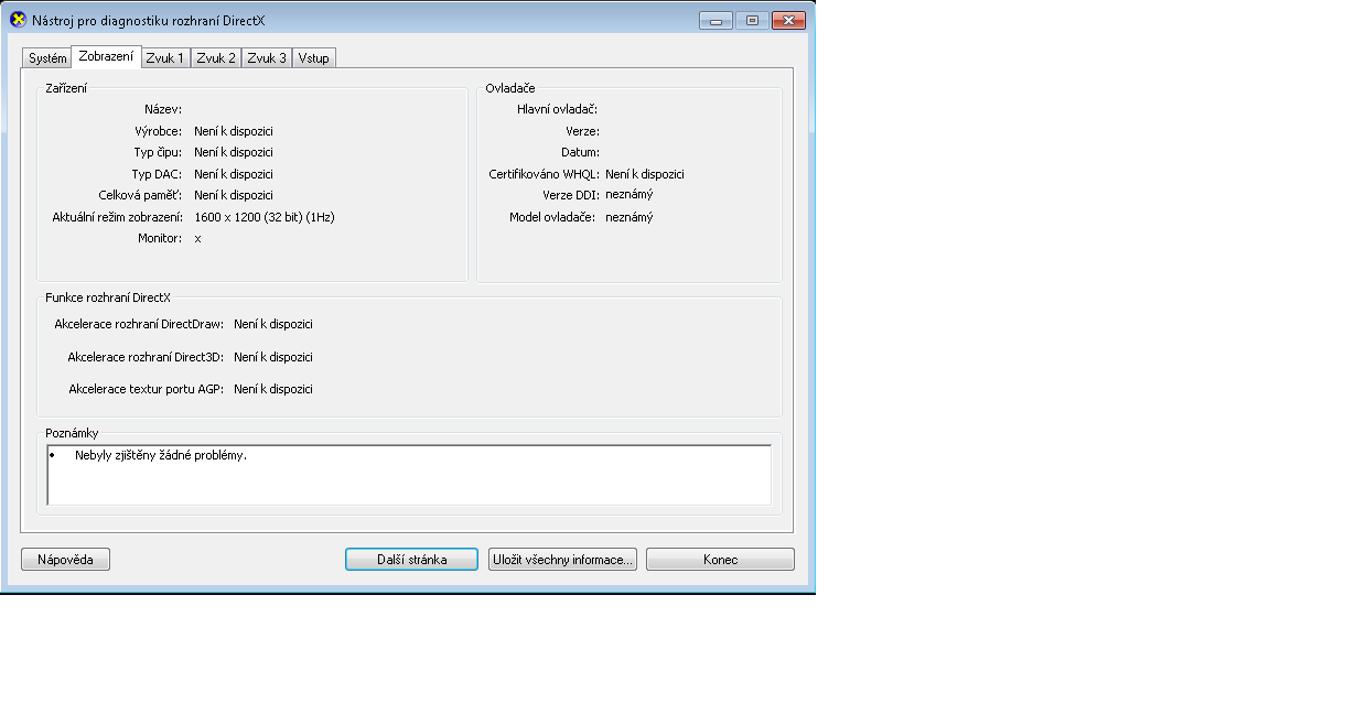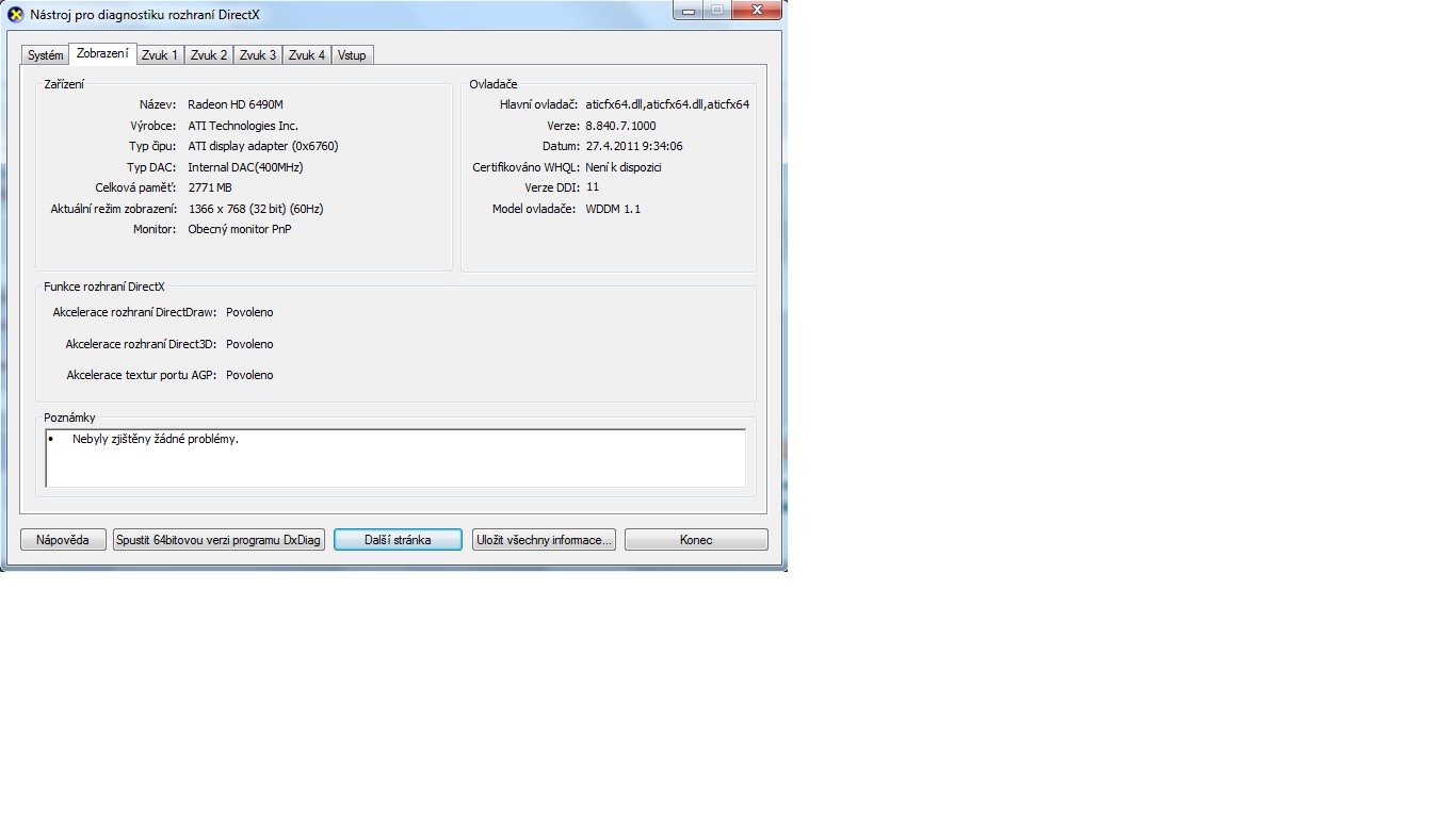 Díval jsem se i na ostatní fóra a tam je že má jít do dxdiag nebo tak nějak. Tu je Printscreen dxdiagu.