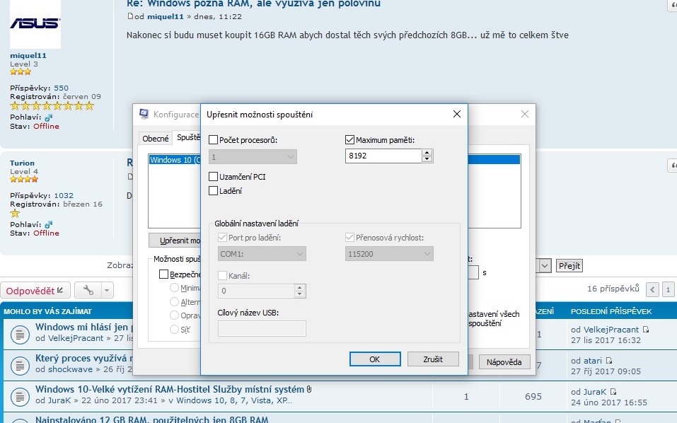 Dej screen z msconfigu jak to tam máš zaškrtnuté u max memory.
