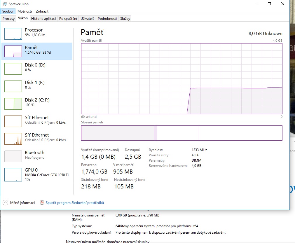 Re: Windows pozná RAM, ale využívá jen polovinu