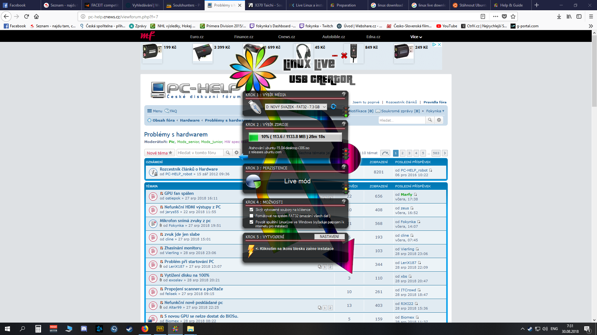 PS: první 3 pokusy o zprovoznění linuxu neúspěšné, pokaždé jiná verze :/