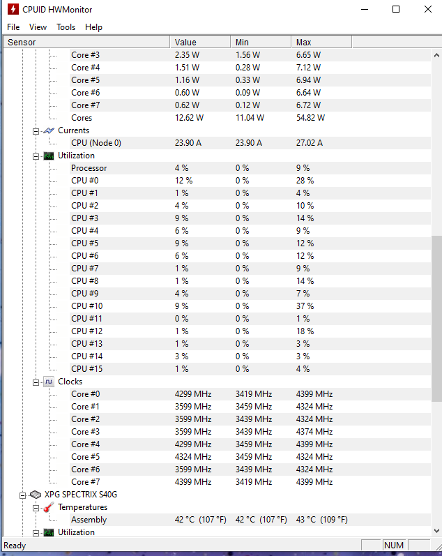 aktualizuj BIOS, v systému pak zkontroluj že je napájení nastavený na Ryzen Balanced, v pokročilym nastevení napájení pak zkontrolovat položku "řízení spotřeby procesoru" -> "minimální stav procesoru" - 5%...