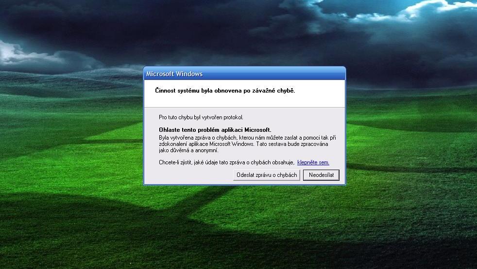 Zde je ta chyba ktera se mi ukazuje po tom co PC (spadne)