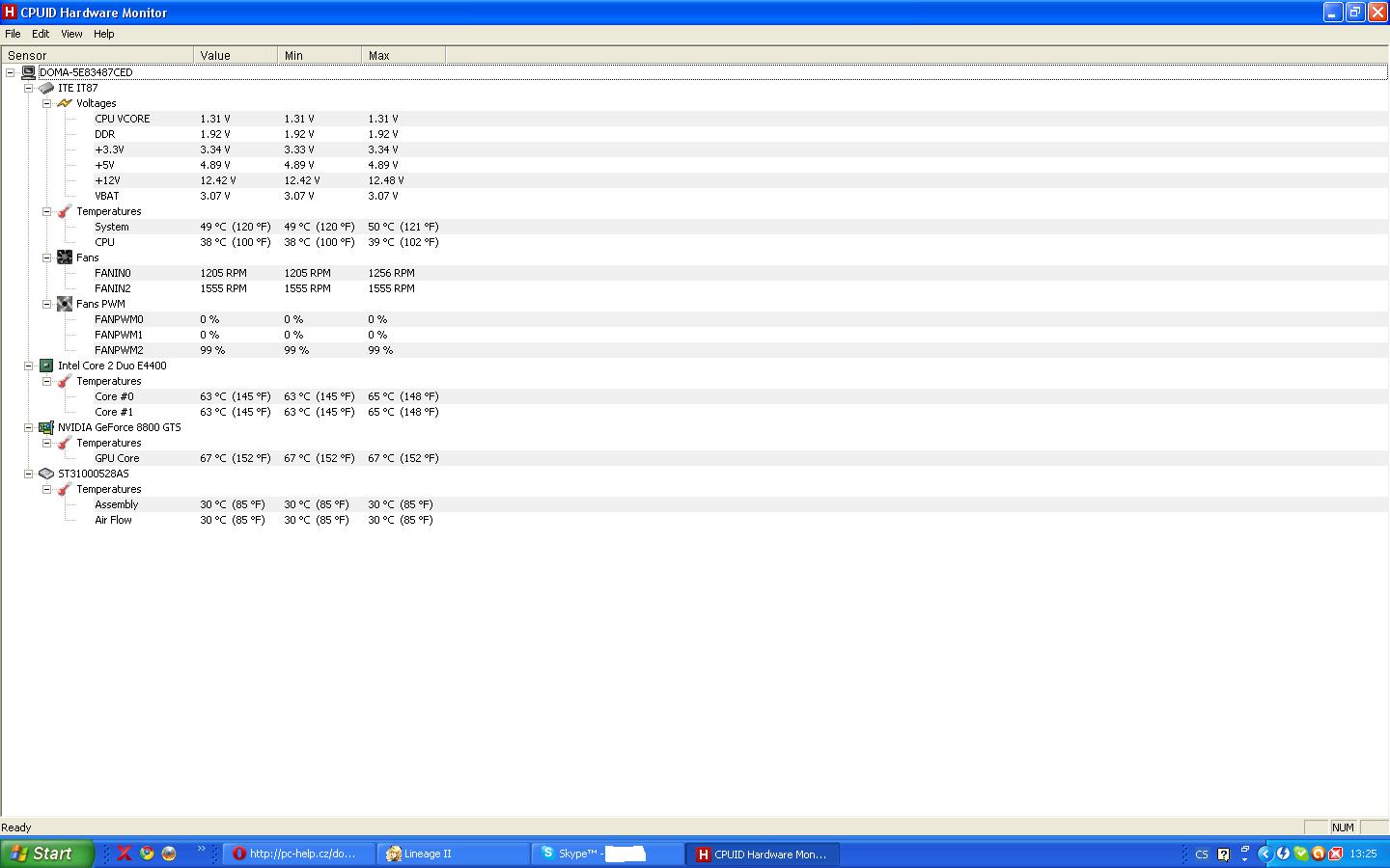 Tyhle teploty byli když jsem měl pouze zapnutou operu.Bez her..