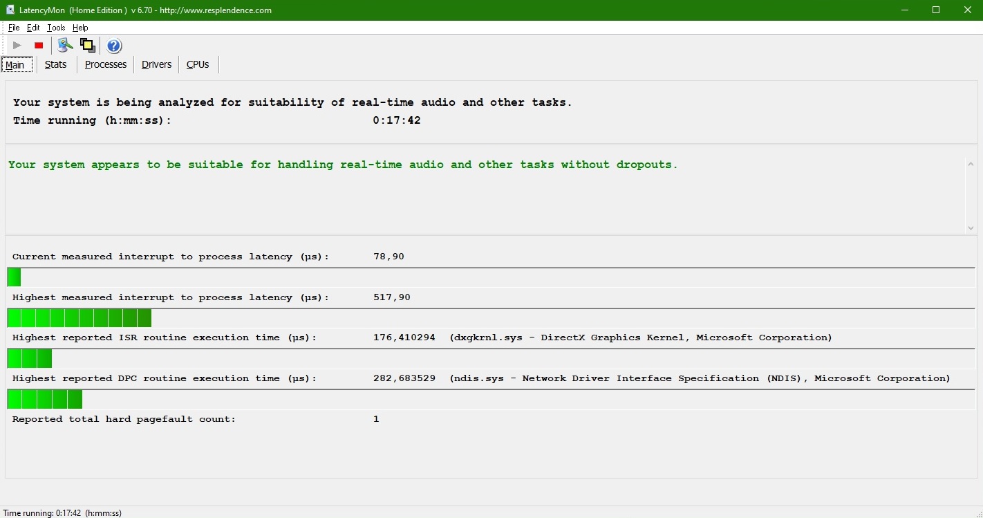 Ale mě právě nejvíc štvalo to lupání. Jsem rád, že jsem přišel na to, že bez momentum cache to nelupe, tak ho prostě nebudu zapínat, ovladače dám jen ty co být musí a užívám si muziky a videí bez prskanců. To upozornění o kterým píšeš, to je když se ti zvedne latence přes asi 2000, tak je to stále stejné - prostě je "nekde" problém. Teď jsem DPC měl puštěný asi půl hodiny a jsem v pohodě, jen by to mohlo být zelený, to by bylo ještě lepší:
