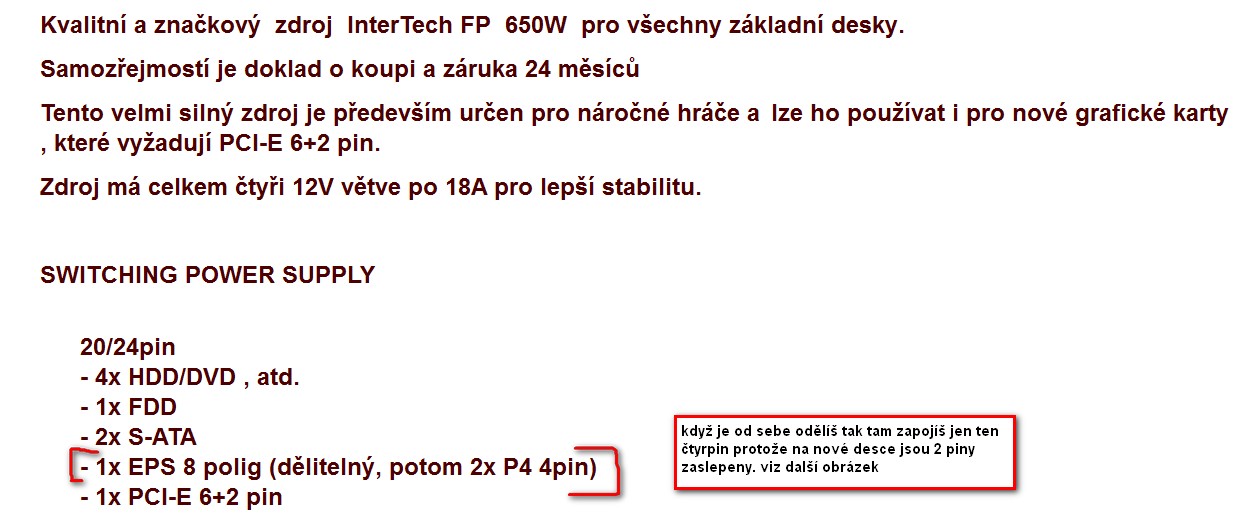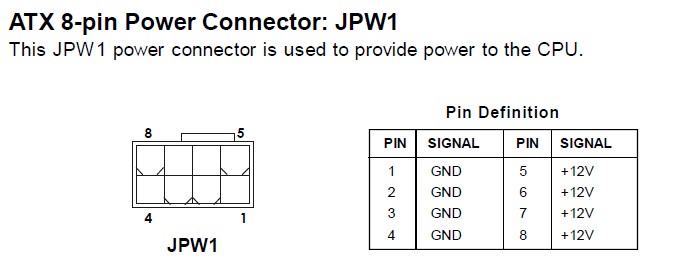 vysvětlení: když ten 8pin nezapojíš není takovej nárok na zdroj, ale procesor nemá dostatek šťávy aby naběh a proto se jen roztočí ventilátory, když zapojíš 8pin tak je to na zdroj už příliš a +12V je přetíženy a zdroj vypne