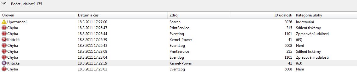 1) Poprvé když nastal problém, reinstaloval jsem win, po reinstalaci bylo vše v pořádku. Stejná chyba nastala asi po týdnu.