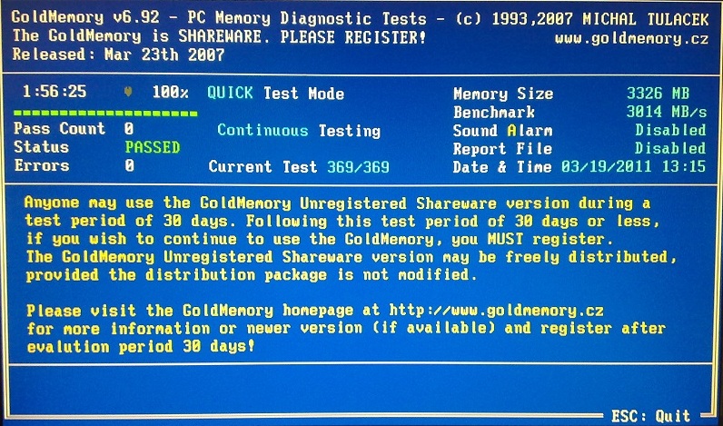 Ano, ten test paměti spusť.
