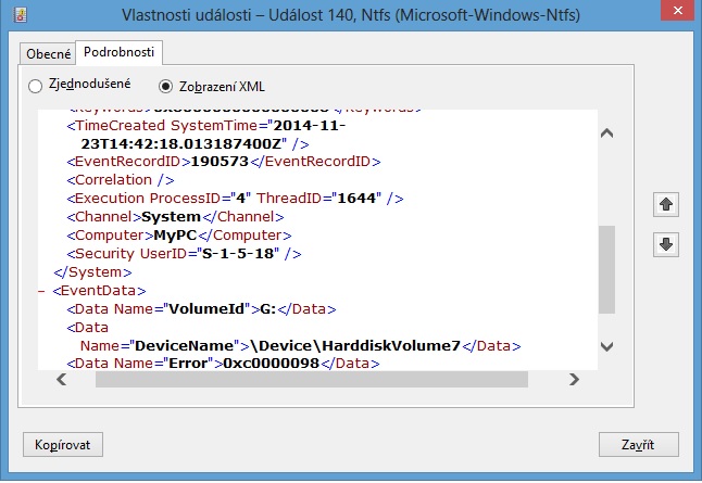 V řádce "Current read-only state" by mělo být uvedeno: =No a v řádce Read-only také: =No