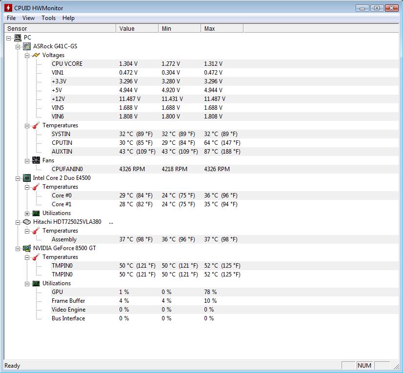 Jinak mě větrák na CPU i na GPU běží v klidu (když na PC nic nedělám) na cca 1200RPM a Vám běží na cca 4300RPM, to se mi zdá celkem dost, proto hučí.