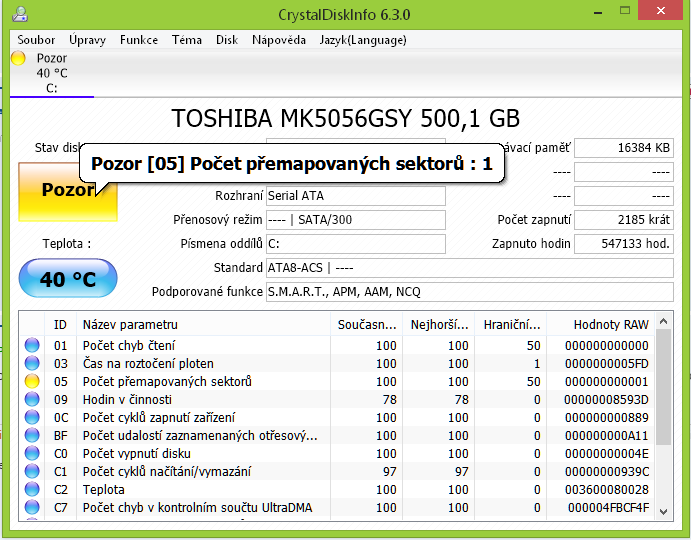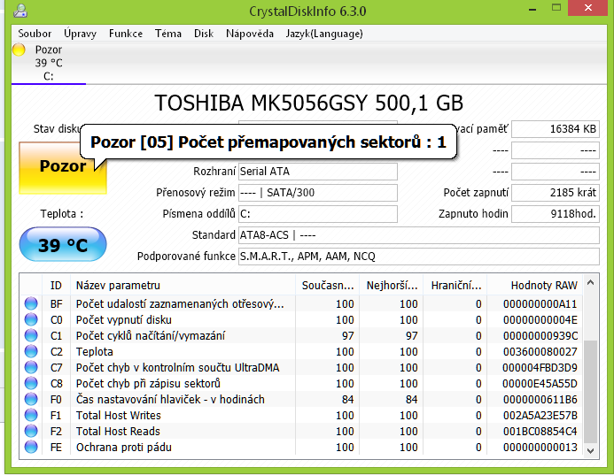 C8 100 100 __0 00000E46743F Počet chyb při zápisu sektorů