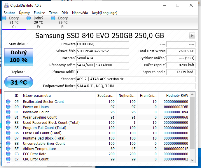 Ano všechno OK. Životnost SSD na 93%. Bojím se že je to deska, musím sehnat nějakou na otestování + procík a uvidíme :)