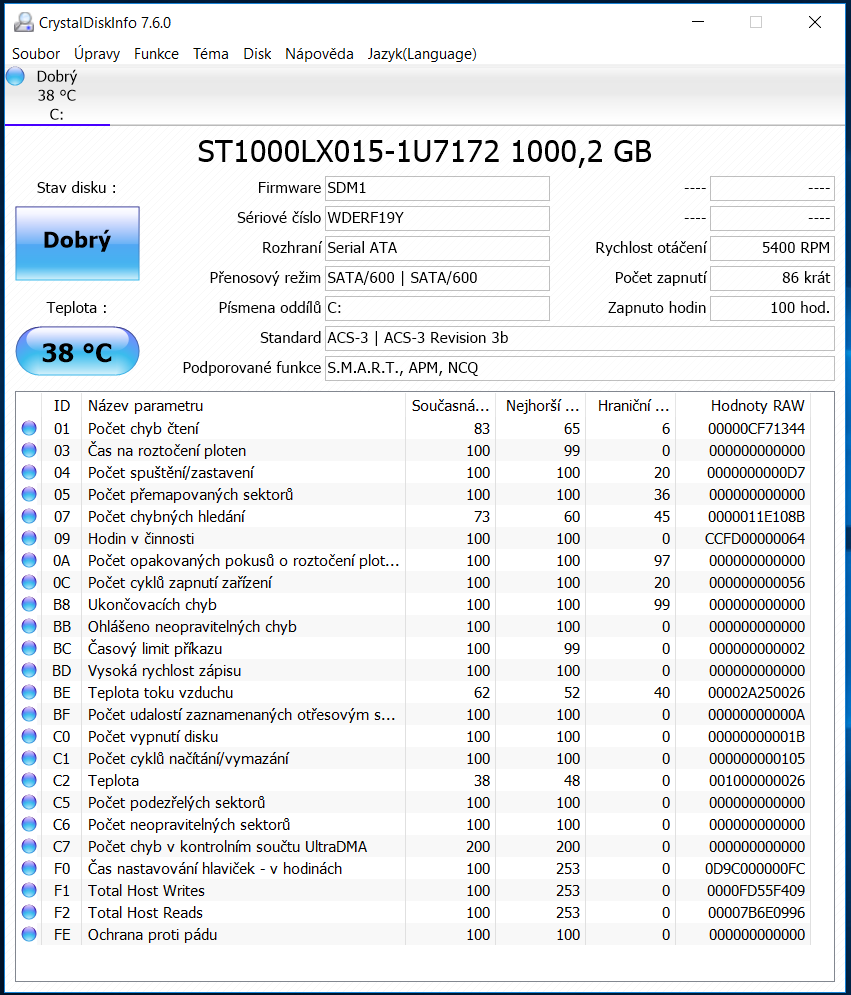 hoď screen z CrystalDiscInfo a místní borci ti z teho vyčtou esli je něco špatně, o komplet fyzickym stavu disku to ale všechno nevypoví...