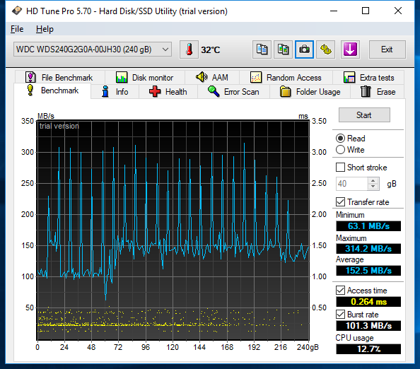 Treba rychlost cteni ze vsech sektoru nema u SSD moc cenu merit.