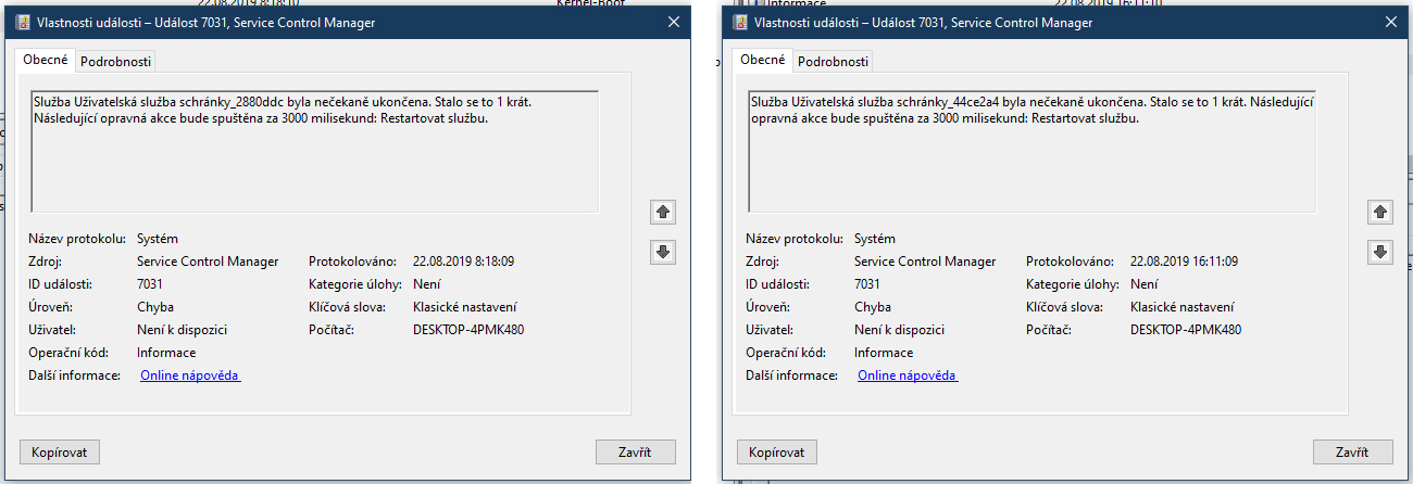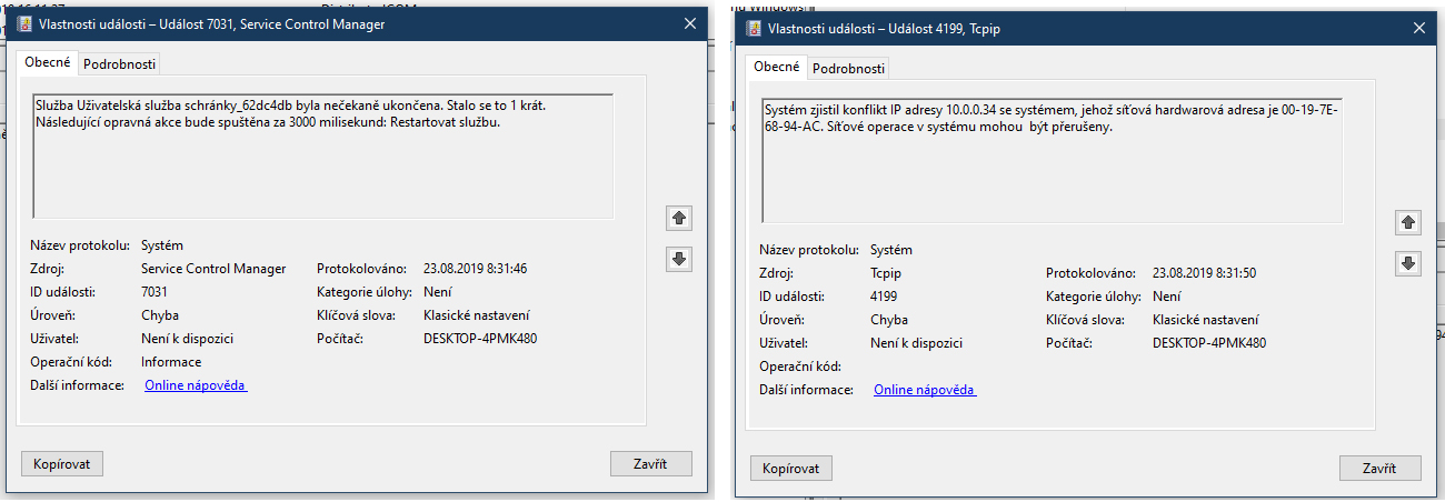 V "protokolech systému windows" v záložce "systém" jsem našel chyby uvedené v příloze. Budu rád za každou radu, popř. informaci co mám zkusit. Díky