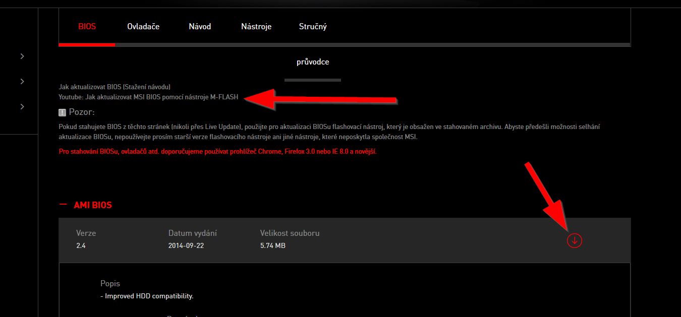 Doslova par centimetru nad odkazem na stazeni posledni verze BIOSu (ktery jsi musel stahovat)